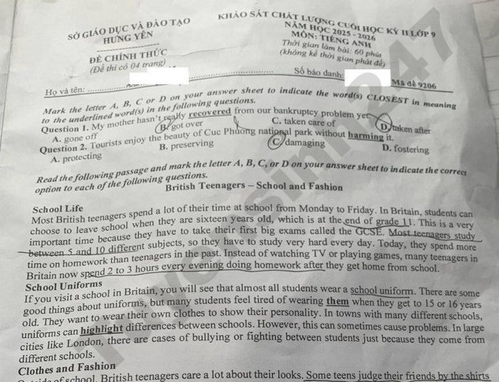 Đề thi cuối học kì 2 môn Văn lớp 12 trường THPT Thuận Hưng (Cần Thơ) năm học 2025-2026 được đăng tải chi tiết dưới đây.