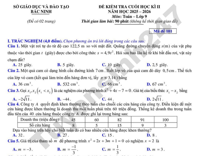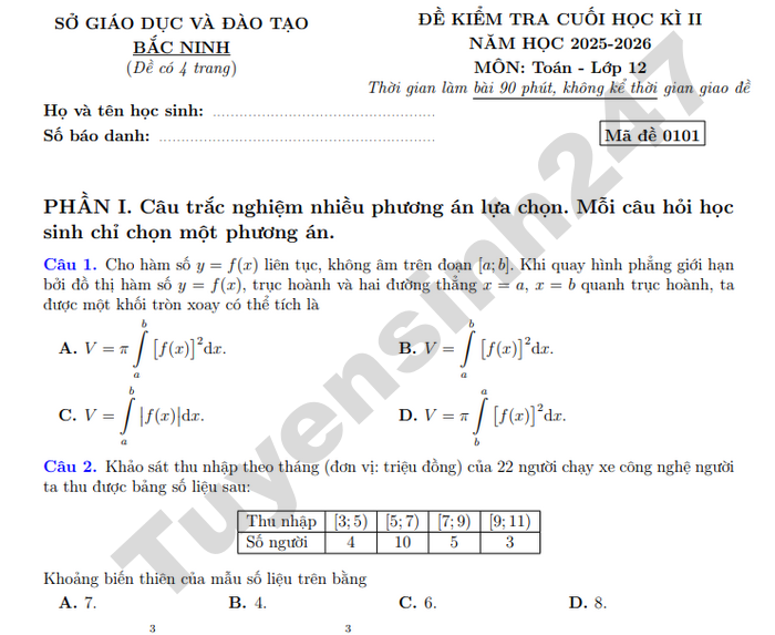 Đề thi học kì 2 môn Sử lớp 12 của Sở Giáo dục và Đào tạo Bắc Ninh năm học 2025-2026 mới tổ chức thi, được cập nhật dưới đây.