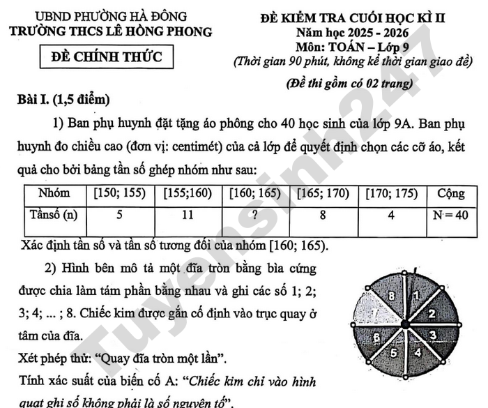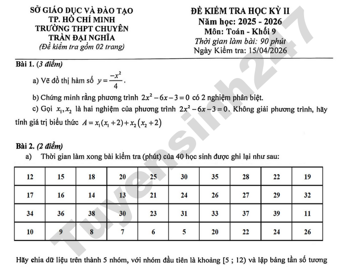 Chi tiết đề kiểm tra học kì 2 năm học 2024 - 2025 lớp 9 môn Toán của trường THPT Chuyên Hà Nội-Amsterdam.